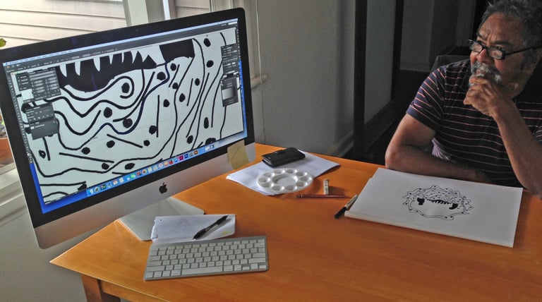 I worked with Goreng‑Wirlomin Minang Noongar Elder Ezzard Flowers in storytelling sessions to guide the design direction and coordinated the website development, incorporating the logo and visual assets he created.